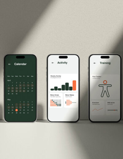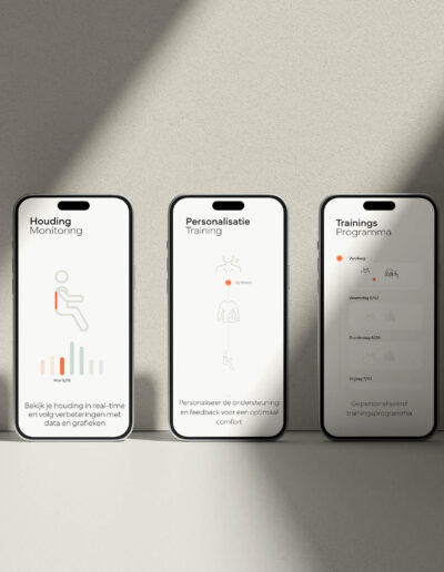 STRADO biedt een geïntegreerde en proactieve oplossing, in de vorm van een technologisch harnas dat actieve feedback combineert met passieve monitoring. De borstmodule bevat een mechanisme dat, op basis van houdingsdata, een gecontroleerde spanning genereert om de gebruiker subtiel te corrigeren. In de schouderzones registreren sensoren bewegingen en asymmetrie, met bijzondere aandacht voor torsie en rotatie. De applicatie maakt het mogelijk om houdingsafwijkingen in kaart te brengen over langere tijd, op individueel en collectief niveau. Hierdoor ontstaat een dubbele werking: enerzijds krijgt de gebruiker onmiddellijke, intuïtieve feedback via spanning, anderzijds wordt het houdingsgedrag structureel gemonitord en gevisualiseerd. Dit biedt opportuniteiten voor coaching, ergonomisch advies of preventiebeleid binnen de organisatie.