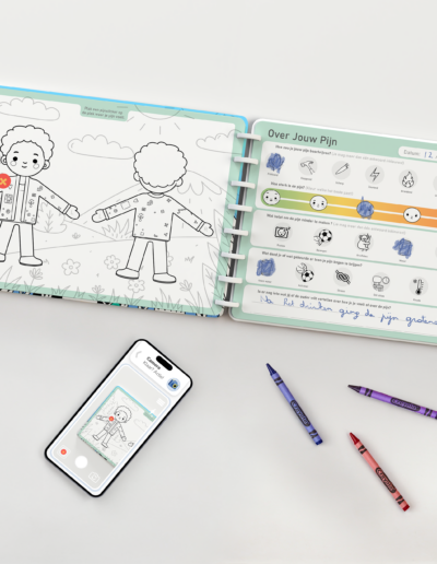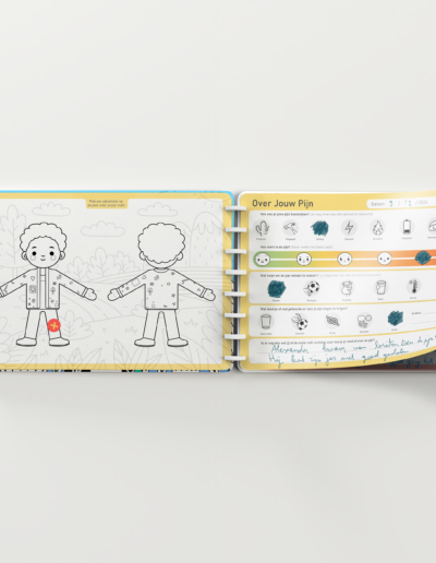 ‘Draw on it’ is een innovatief systeem ontworpen om jonge patiënten met sikkelcelziekte te ondersteunen bij het documenteren van hun pijn en gezondheid. Het systeem bestaat uit een activiteitenboekje en een mobiele applicatie. Het activiteitenboekje bevat visuele en interactieve elementen, zoals stickers om pijn ervaringen te documenteren en dagelijkse updates om bv. waterinname bij te houden en medicatiegebruik te registreren. Dit maakt het voor kinderen leuker en gemakkelijker om hun gezondheid bij te houden, wat hun betrokkenheid bij hun eigen zorgproces bevordert.