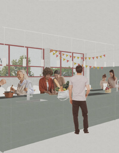 De Turnhout green living community transformeert het voormalige Sint-Victor schoolgebouw tot een duurzame, inclusieve woonomgeving. Het project richt zich op milieubewustzijn, sociale cohesie en verbeterde levenskwaliteit voor families, senioren en alleenstaanden. Door collectieve woonvormen, co-housing, groene ruimtes en gemeenschapsfaciliteiten te integreren, biedt het een innovatieve oplossing voor huisvestingsproblemen in Turnhout. Het behoudt de modernistische architectuur en gebruikt modulaire eenheden en hergebruik van materialen om duurzaamheid en flexibiliteit te garanderen.