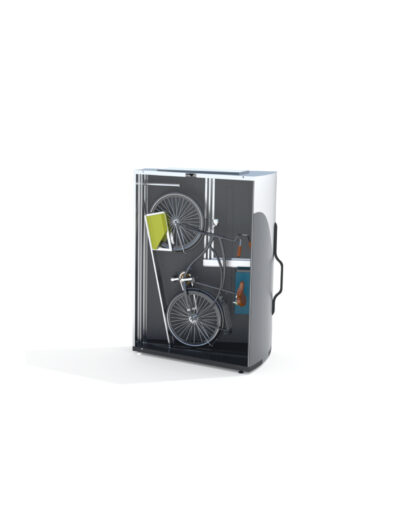 Binnenin de lockers bevindt zich een systeem waarmee de fiets verticaal wordt opgesteld om zo veel mogelijk ruimte te besparen. Dit systeem komt naar buiten wanneer de gebruiker de deur opent zodat die extra comfortabel de fiets in de stalling kan plaatsen. Niet enkel de fiets wordt erin geplaatst, maar er is ook plaats voorzien voor het opbergen van spullen (bijvoorbeeld een helm) Voorts is ook het opladen van de batterij mogelijk, via de stroom voorzien door de zonnepanelen).
