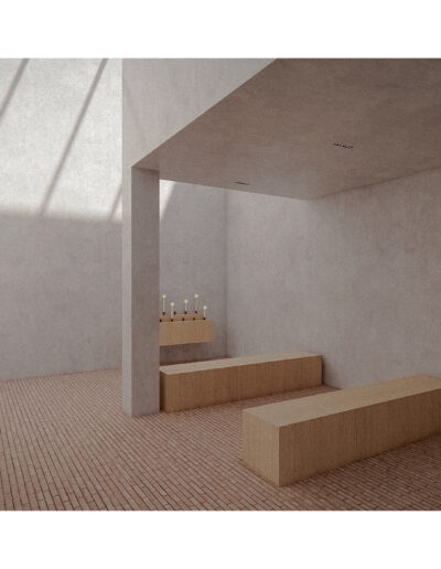 Kerken hadden een grote maatschappelijke waarde als instituut en plek voor samenkomst en gebed. Door de versnelde secularisering, is het aantal kerkgangers echter sterk verminderd. Deze masterproef richt zich op de herbestemming van de Sint-Lambertuskerk in Walshoutem. Dit modernistische gebouw, ontworpen door architect Adolf Nivelle in 1967, is onlangs verworven door de stad Landen, die het wil omvormen tot een gemeenschapscentrum en multifunctionele ontmoetingsplek. De kerk biedt een uitdagende typologie die vraagt om een nieuwe invulling en een versterkte connectie met de omgeving. Het nieuwe programma is gebaseerd op de stem van 144 inwoners en belanghebbenden en komt zo tegemoet aan mijn streven naar een participatieve ontwerpbenadering.