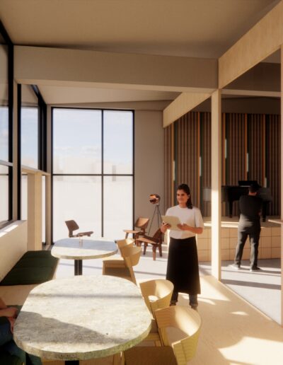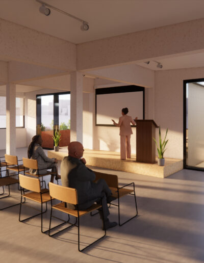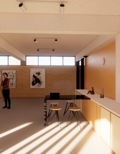 Het ontwerp bestaat uit drie bouwlagen: kelder, gelijkvloers en een verdiep. In de kelder zijn de ateliers ontworpen voor de vereniging Creative Factory. Op de begane grond is er een deel publiek door een exporuimte en een horecaconcept, in het andere deel zijn er ateliers waar innovatieve creatievelingen graag hun eigen plek wilden, bijvoorbeeld een keramiste of een houtatelier. Het verdiep is ontworpen als een polyvalente ruimte met als extra een dakterras. Aan de gevels zijn er ook aanpassingen gebeurd om het gebouw meer aantrekkelijker te maken door raamopeningen te maken die een goed zicht geven in het gebouw. Dit ontwerp is een gepast ontwerp voor dit gebouw.