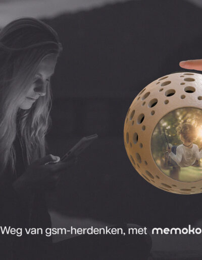 Memoko is een product-service die rouwenden ondersteunt bij het verzamelen en bewaren van digitale herinneringen. “Memory beads” bevatten foto’s die geprojecteerd en bewaard worden in een unieke, keramische herdenkingslamp.