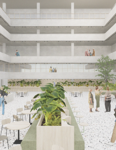 Bij het ontwikkelen van een passende herbestemming voor de Stadsschouwburg onderzocht ik hoe de architectuur en inrichting van het gebouw kunnen bijdragen aan het welzijn en de culturele ervaring van de bezoekers. De voorziening van diverse toegankelijke functies, zoals een horecazaak, een boekenwinkel en een bibliotheek, dragen bij aan de levendigheid van het gebouw en trekken een breder publiek. Door transparante en uitnodigende ingangen te creëren, wordt de verbinding tussen de Stadsschouwburg en de openbare ruimte versterkt, waardoor een open en dynamische ontmoetingsplek ontstaat.