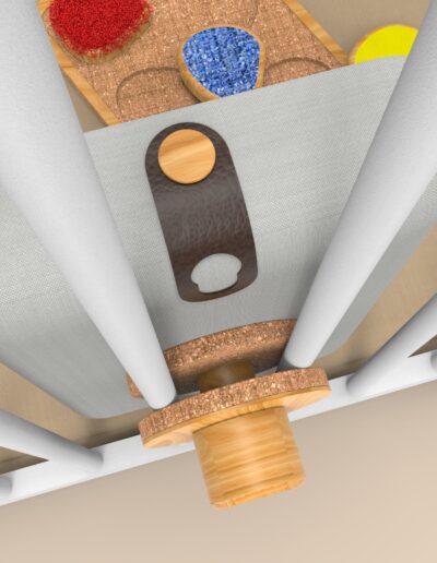 VÄRA bestaat uit een opbergmodule voorzien van educatieve panelen per psychomotorische fase. De panelen worden vervangen en evolueren mee met de ontwikkeling van het kind. De opbergmodule zorgt voor veiligheid, orde en bewegingsruimte in het babypark. De educatieve panelen zorgen voor een actieve ondersteuning van de zelfstandige cognitieve- en motorische ontwikkeling. VÄRA is gemaakt van uitsluitend hernieuwbare of herbruikbare grondstoffen.