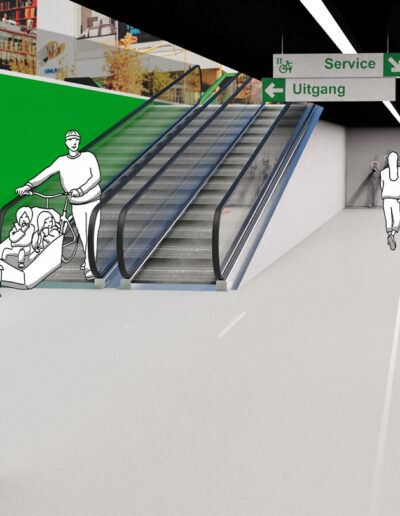 Het ‘Handboek Fietsenstallingen’ voor de Gemeente Rotterdam heeft als doel herkenbare en gebruiksvriendelijke fietsenstallingen te creëren. In een dynamische stad als Rotterdam is consistentie in visuele identiteit cruciaal, zodat fietsers gemakkelijk hun weg kunnen vinden naar en binnen de stallingen. Het handboek legt naast herkenbaarheid ook de nadruk op gebruiksvriendelijkheid. Fietsenstallingen moeten efficiënt en comfortabel in gebruik zijn voor iedereen, met aandacht voor ruimte, veiligheid en overzicht.