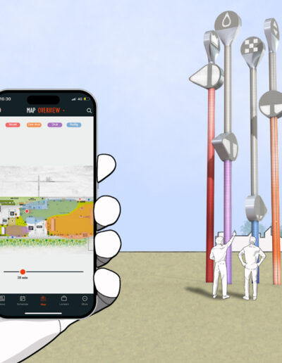 De top van de paal zou het podium vermelden d.m.v. de iconen die al worden toegepast op festivals. Deze worden weergegeven via een geïntegreerd LED-scherm.