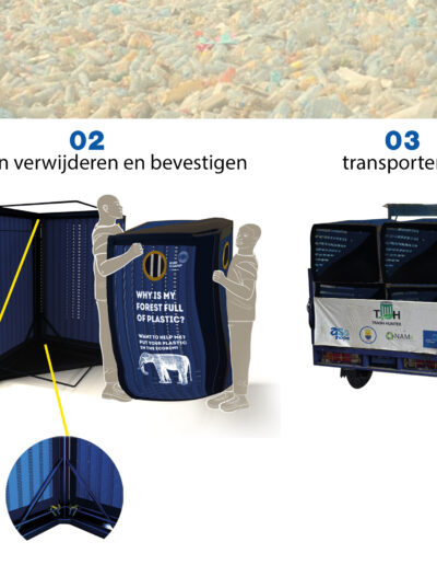 De EcoBin is een duurzaam inzamelpunt voor plastic afval op Kameroense scholen. In tegenstelling tot bestaande oplossingen heeft de EcoBin een minimalistisch metalen frame. Plastic wordt ingezameld in herbruikbare bigbags. Deze zijn makkelijk te vervangen en kunnen machinaal bedrukt worden of beschilderd worden door leerlingen. Zo wordt inzameling gecombineerd met creatieve campagnes en co-creatie, wat betrokkenheid en duurzaam gedrag versterkt.
