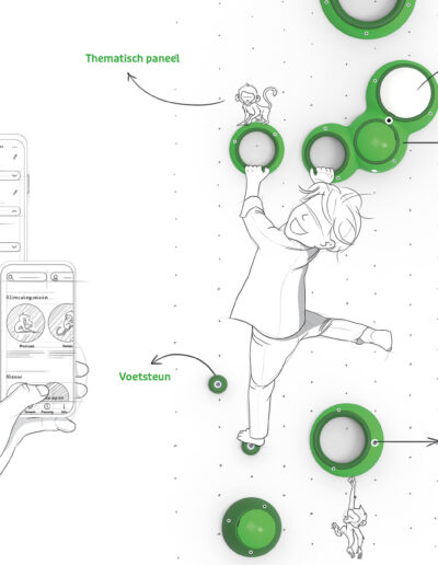 Verder is de set van CLIMO verrijkt met thematische panelen. De panelen zijn dunne, vlakke platen die mee aan de klimwand bevestigd worden. De panelen vormen een speels en vrolijk element om de kinderen af te leiden en extra te motiveren. Maar het laat ook een gerichte communicatie toe tussen trainer en kind. Er kunnen duidelijke doelen en klimopdrachten in spelvorm gegeven worden. Dit maakt de klimtrainingen leuker en creatiever.