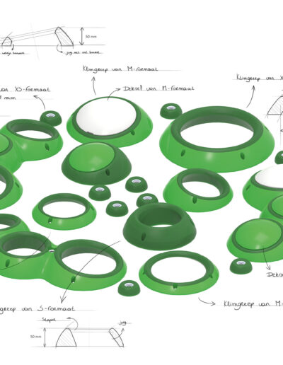 De klimgrepenset van CLIMO biedt meer dan gewone klimgrepen. Zo omvat het speciale, modulaire klimgrepen die meerdere openingen bevatten. Kinderen kunnen zelf kiezen welke opening ze willen gebruiken en waar ze zich het meest vertrouwd bij voelen. De klimgrepen bieden steeds goede houvast en steun, ongeacht de verschillende soorten en de oriëntatie waarin de klimgrepen staan.