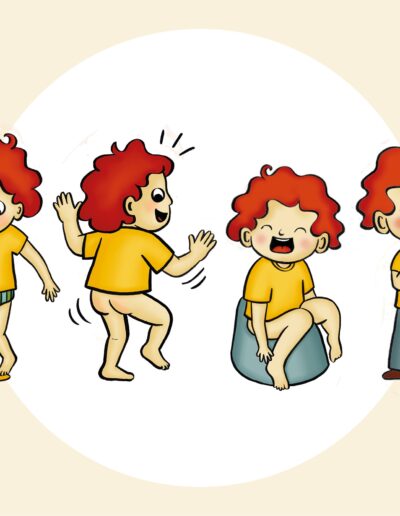 Voor elk groeimoment is er een fel gekleurde mijlpaaldisc. Die krijgt het kind in de opvang en kan het in het doorzichtige voorzakje steken van het zindelijkheidszakje. Zo zien de ouders meteen wat het kind al bereikt heeft. Tegelijk is het zindelijkheidszakje een handige manier om kleding van en naar de opvang te vervoeren. Alweer op maat van het kind, dat dit trots zelf kan dragen.