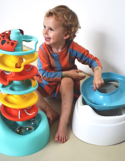 Op het potje zitten wordt pas prettig dankzij de potjestoren. Een leuk speeltje waardoor het kind met plezier wat langer op het potje blijft zitten, belangrijk voor een gezonde stoelgang. Om het zindelijkheidstraject samen feestelijk af te sluiten, krijgt elk kind een Lou-medaille.