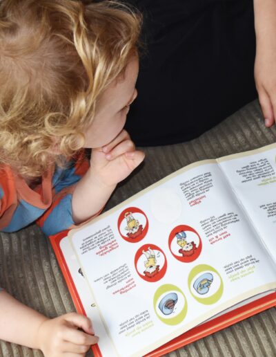 Lou is het centrale figuurtje dat opduikt in alle tools en je zo bij de hand neemt. ‘Lou uit de luiers’ is een leuk voorleesboekje met stickerpagina’s, dat heel wat informatie voor ouder en kind bevat.