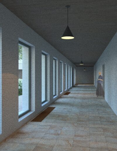De aanpassingen bestaan uit kleine, atmosferische ingrepen die de ziel van de abdij reflecteren. Hierbij zijn de originele meubels en materialen een maatstaf om de functies een gepaste huisvesting te geven. Door de muren en ramen als leidraad te gebruiken, wordt het architectonisch getal toegepast op de nieuwe toevoegingen om de harmonie te bewaren.