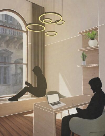 Het centrum combineert toegankelijkheid, comfort en privacy met een warme en gastvrije sfeer, waardoor een geruststellende omgeving ontstaat die het welzijn van de gebruikers bevordert. Deze herbestemming eert de rijke geschiedenis van het gebouw, terwijl het tegelijkertijd voldoet aan de moderne zorgbehoeften van kankerpatiënten. Het ontwerp van het nieuwe kankercentrum omvat drie specifieke zones: een zorgzone, een zone voor gemeenschappelijke activiteiten en een publieke zone. Elke zone is ontworpen om te voldoen aan de specifieke behoeften van de gebruikers, waarbij flexibiliteit en multifunctionaliteit centraal staan. De traditionele gangen worden getransformeerd tot levendige en functionele passages die dienen als ontmoetingsplekken en gemeenschappelijke ruimtes. Dit bevordert sociaal contact en steun tussen patiënten en hun families.