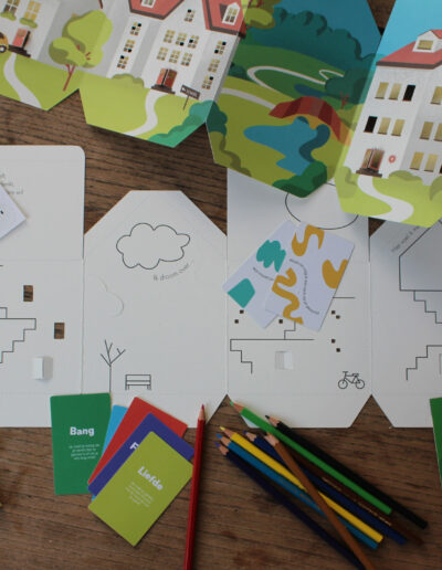 De NOOK toolkit bevat vier personaliseerbare huisjes die fungeren als vertrouwde ruimtes waar KOPP-kinderen hun innerlijke wereld kunnen verkennen. Tekenmaterialen, stickers, een infokaart en emotiekaarten stimuleren creatieve expressie en helpen hen om hun gevoelens te uiten. Een gebruiksvriendelijke app verrijkt de toolkit met functies zoals een emotie-tracker om de ontwikkeling van het kind te volgen. Door de huisjes te scannen komen ze tot leven in de app, wat extra plezier en betrokkenheid creëert.